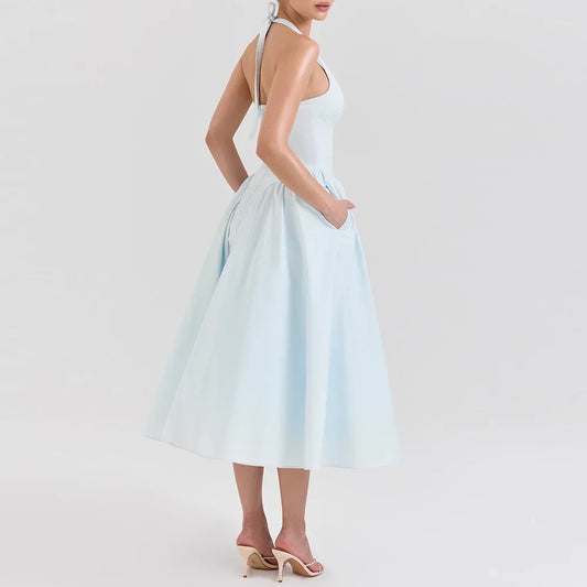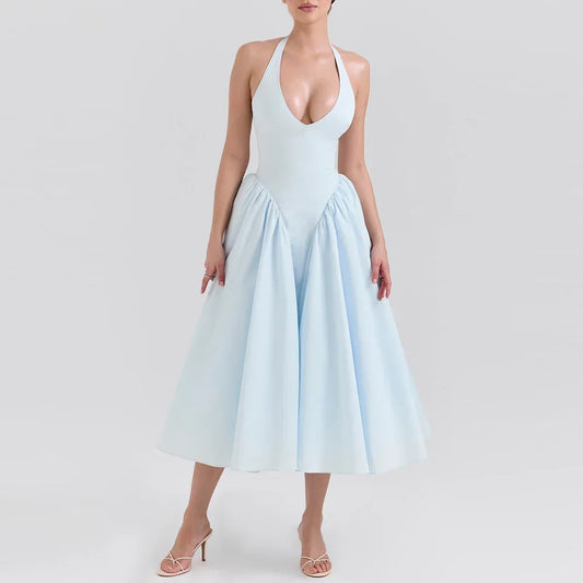 Closure Type: Pullover Dresses Length: Above Knee , Mini Elasticity: Slight Stretch Fabric Type: POLYESTER Material: POLYESTER,Elastane Neckline: Halter Sleeve Length(cm): Sleeveless Sleeve Style: Spaghetti Strap- €39,95
