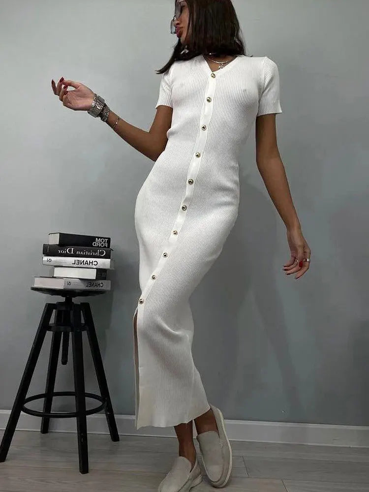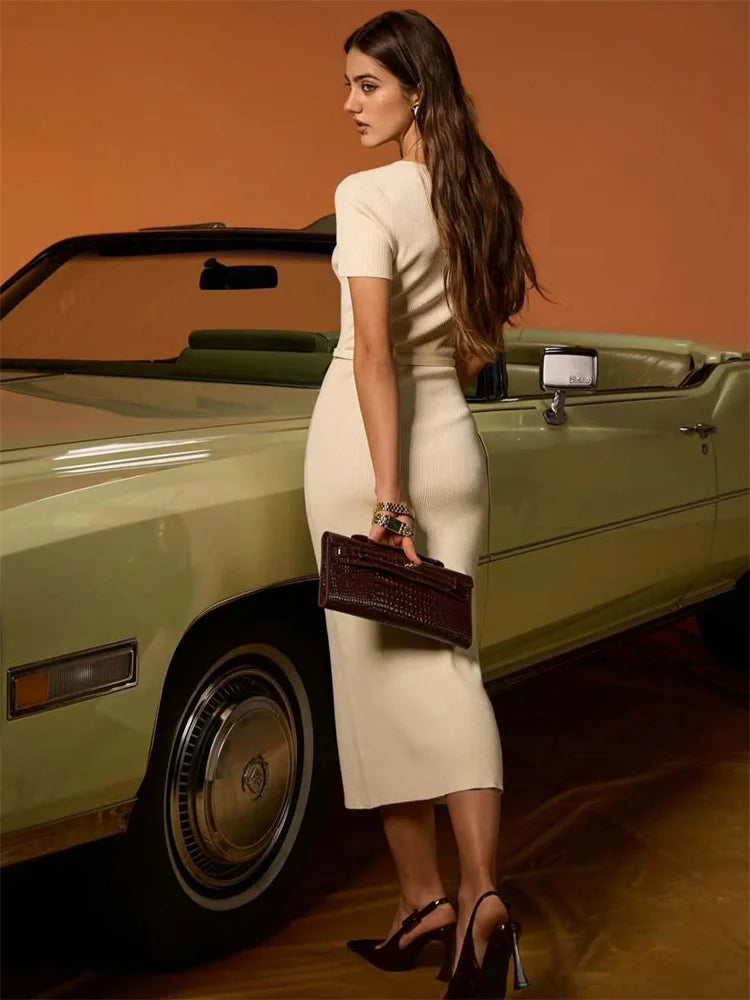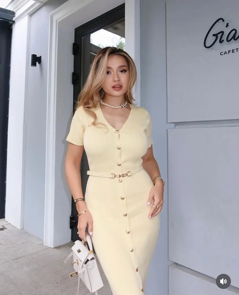 The Tasia Knit Bodycon Dress exudes a mature and sophisticated aura, perfect for a classy brunch. Its high-quality knit material provides a sleek and flattering fit, delivering a grown women vibe. Elevate your style with this must-have dress.